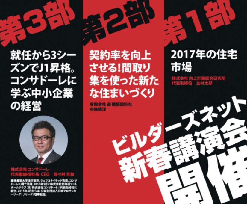 ビルダーズネットでは、下記のとおり『ビルダーズネット新春講演会2017』を開催いたします。